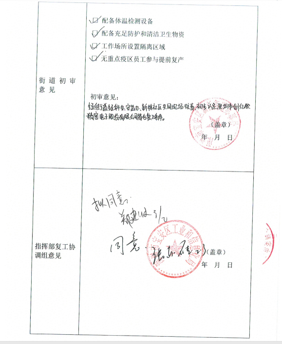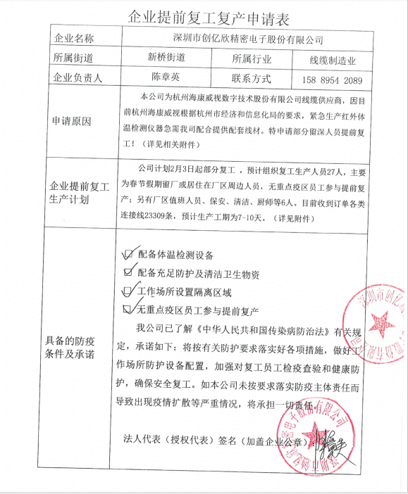 新桥-创亿欣 提前复工复产审批表